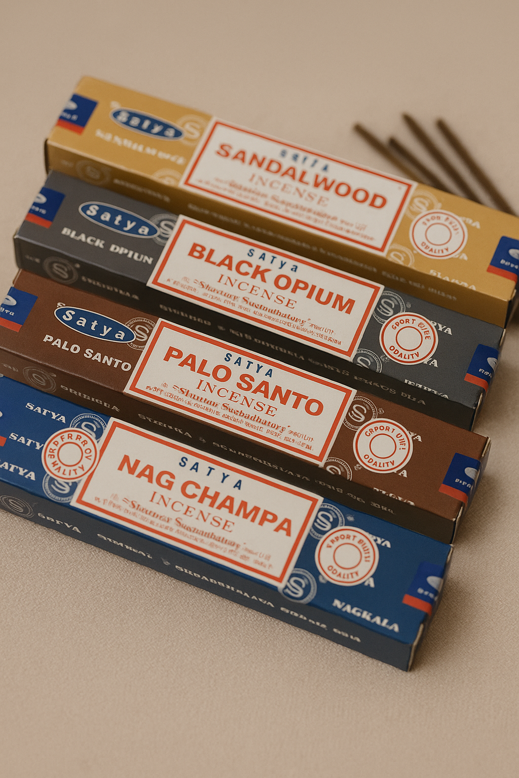 Disponible en plusieurs senteurs au choix, chaque boîte contient 12 bâtons d’encens Satya d’environ 15 g.