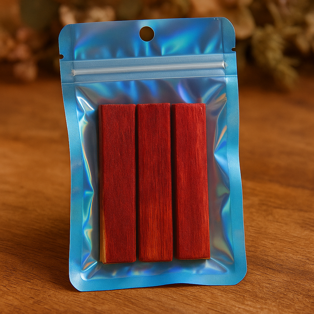 🔥 Palo Santo au Sang de Dragon – 3 Bâtons dans un Sachet Holographique Bleu